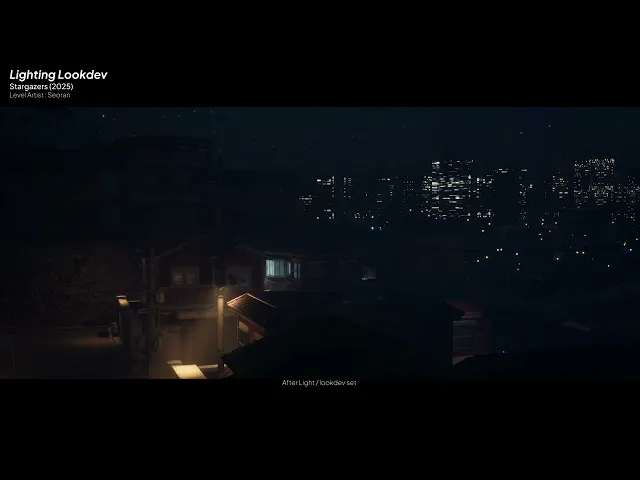 Each background (level) artist initially leveled up at Unreal, then I added Lookdev tasks such as lighting and post-processing settings.