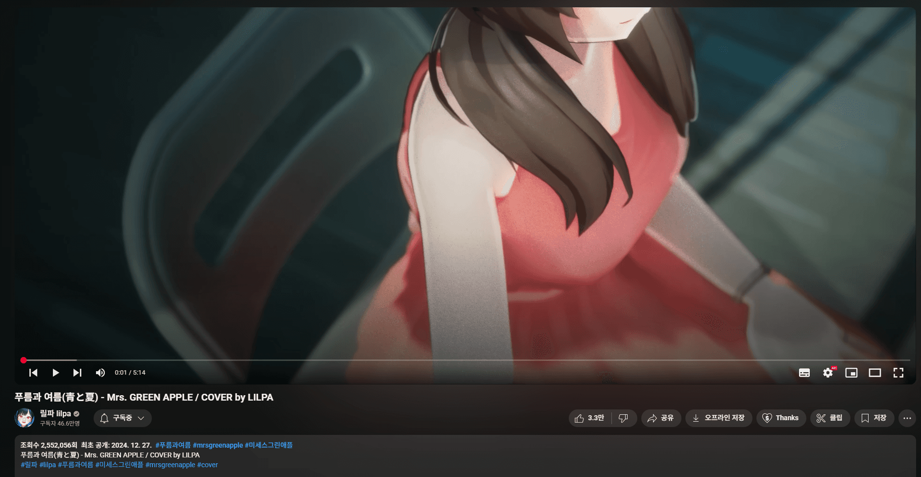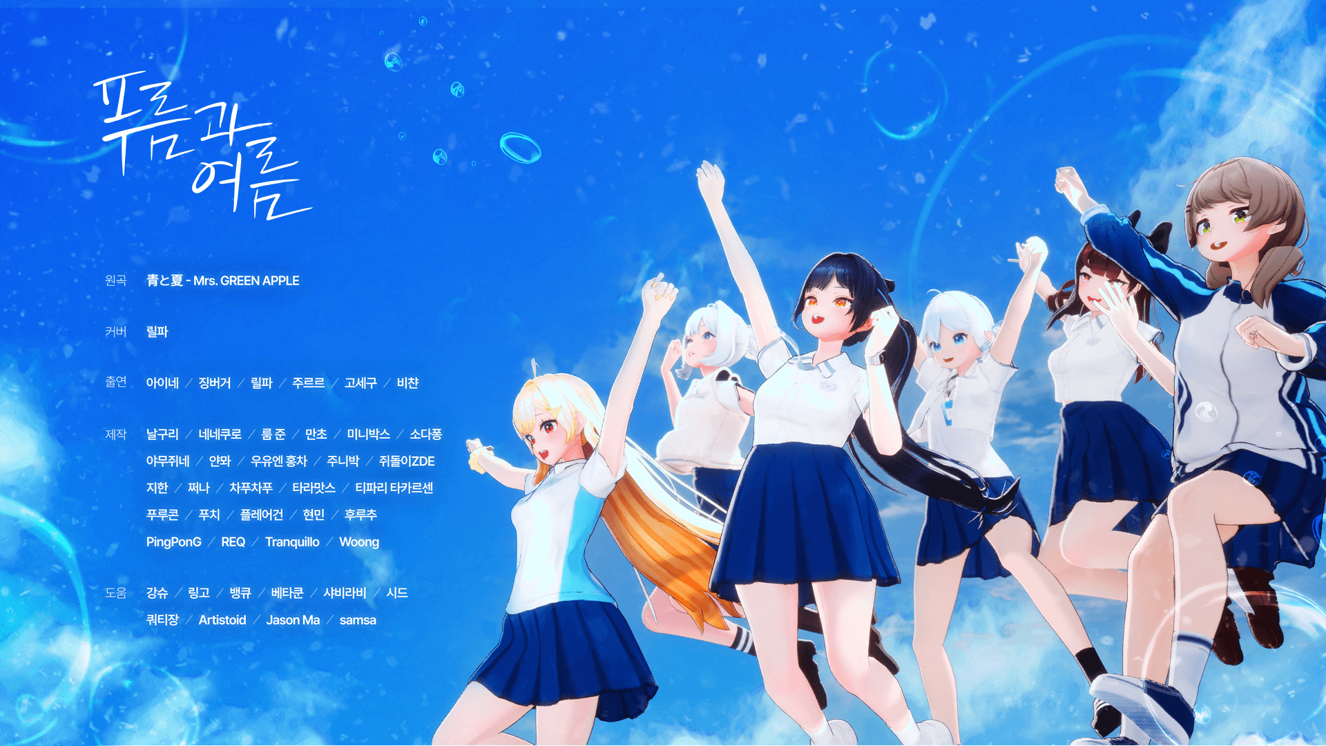This is the MV of the cover song of Mrs. GREENAPPE <Ao To Natsu>, sung by Virtual Artist LILPA, one of the members of ISEGYE IDOL. I worked with about 25 team members and took about five months to produce. Currently, the video is private. If the status is updated, I will correct it.